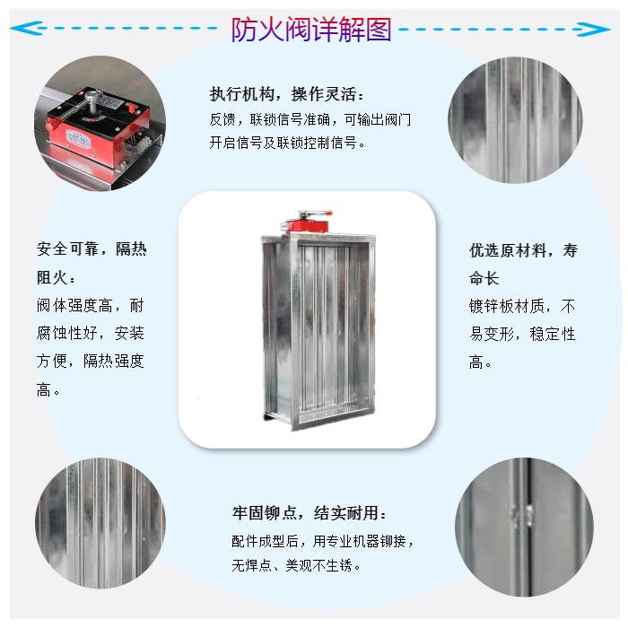 (1)平時呈開啟的狀態,火災的時候當排煙管道內煙氣溫度達到了285度時會關閉,并在一定時間內滿足漏煙量與耐火完整性的要求,這時候就起到隔煙和阻火的作用。